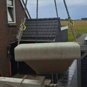 At a dike house in Heinenoord, we delivered a fully customized 3D‑printed slope stairs, installed against a newly constructed concrete retaining wall. The combination of printed concrete with a hardwood frame creates a high‑quality, characterful appearance that blends seamlessly into the dike landscape. For the contractor, this is already the second 3D‑printed slope stairway they have chosen to use — a clear confirmation of their confidence in this efficient and sustainable solution.