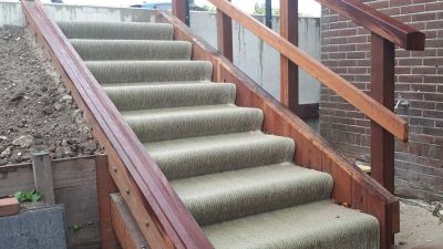 The smooth, layered texture of the 3D‑printed concrete, combined with the warmth of the hardwood detailing, gives the stairway a unique and premium appearance. The result is a functional and aesthetically appealing addition to the property, perfectly aligned with the natural contours of the slope.