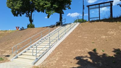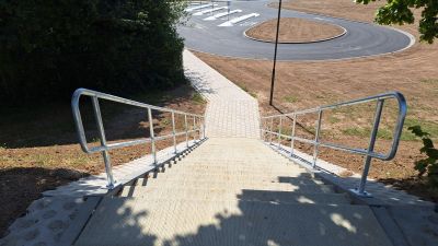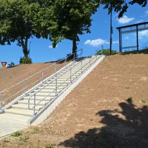 Voor de aanleg van het nieuwe bustransferium aan de Hoge Maasdijk in Andel koos gemeente Altena voor een 3D-geprinte taludtrap. De trap verbindt de bushalte boven op de dijk met het transferium en zorgt zo voor directe toegang tot het terrein voor reizigers.